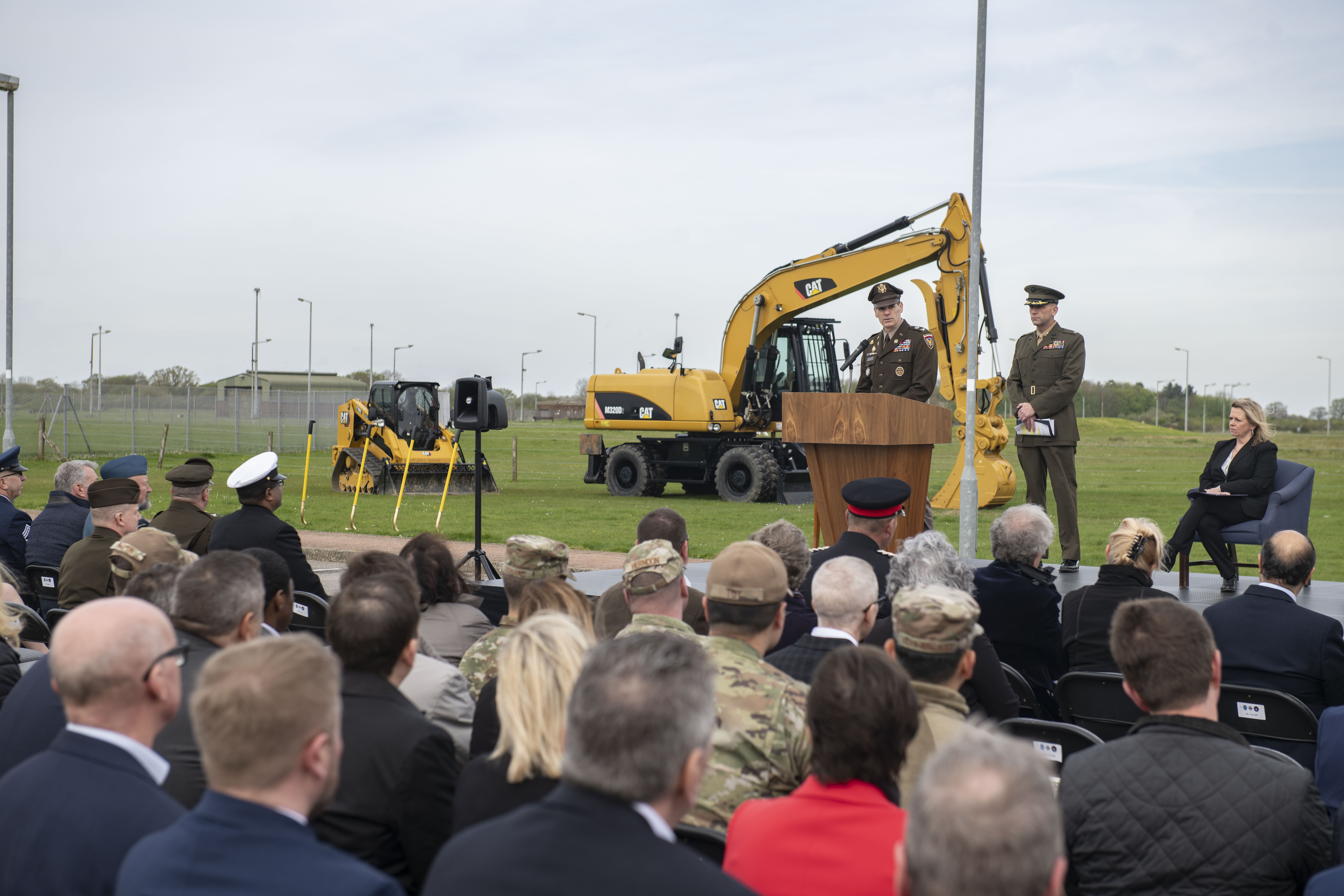 A groundbreaking ceremony for the European Infrastructure Consolidation project’s new Joint Intelligence Analysis Complex building was held at RAF Molesworth, England, on April 12, 2024.