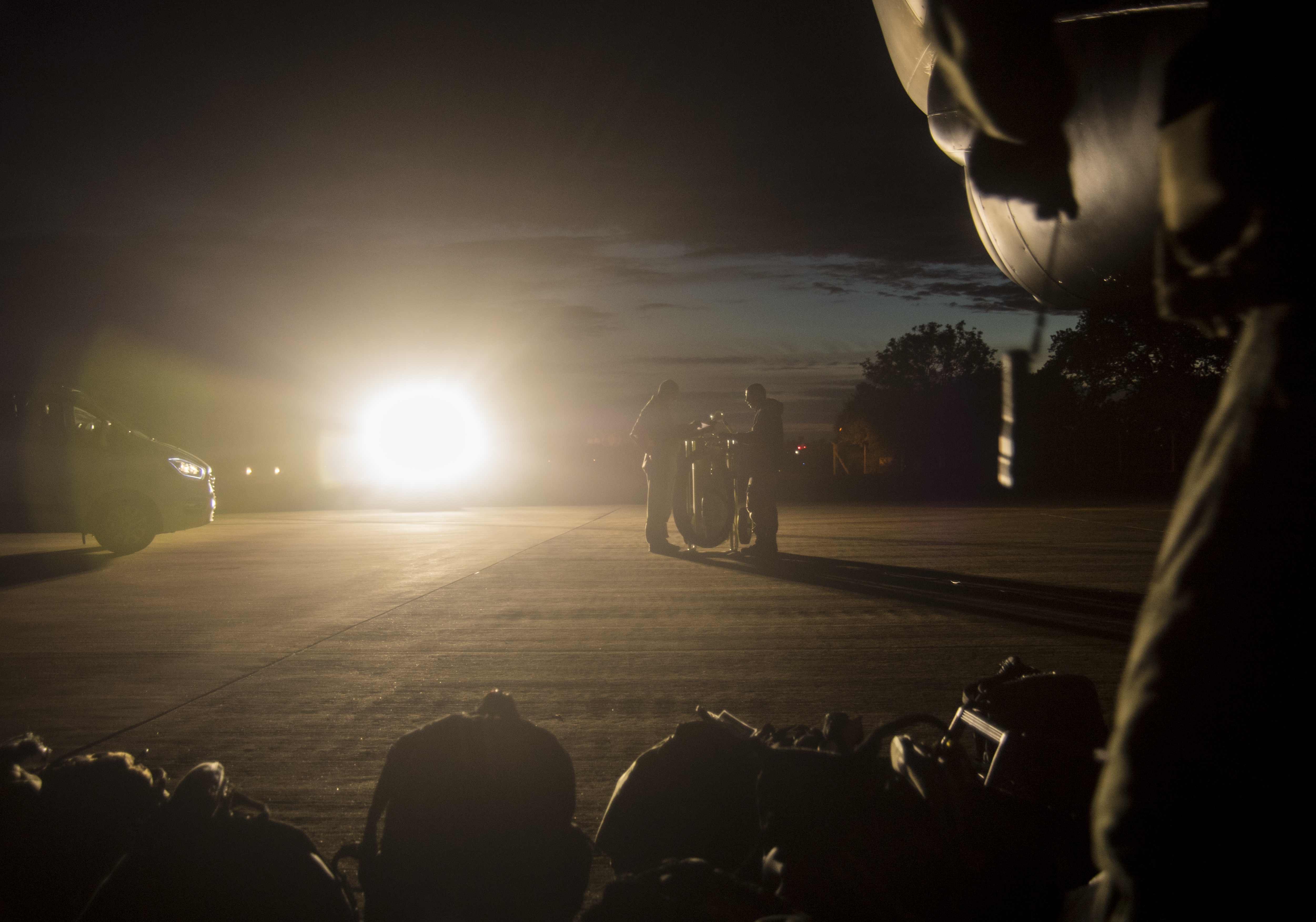 U.S. B-52H Stratofortress aircrew assigned to the 5th Bomb Wing, Minot Air Force Base, North Dakota, load equipment in preparation for a Bomber Task Force Europe mission, Sept. 4, 2020. Operations and engagements with our allies and partners demonstrate and strengthen our shared commitment to global security and stability. (U.S. Air Force photo by Senior Airman Xavier Navarro)