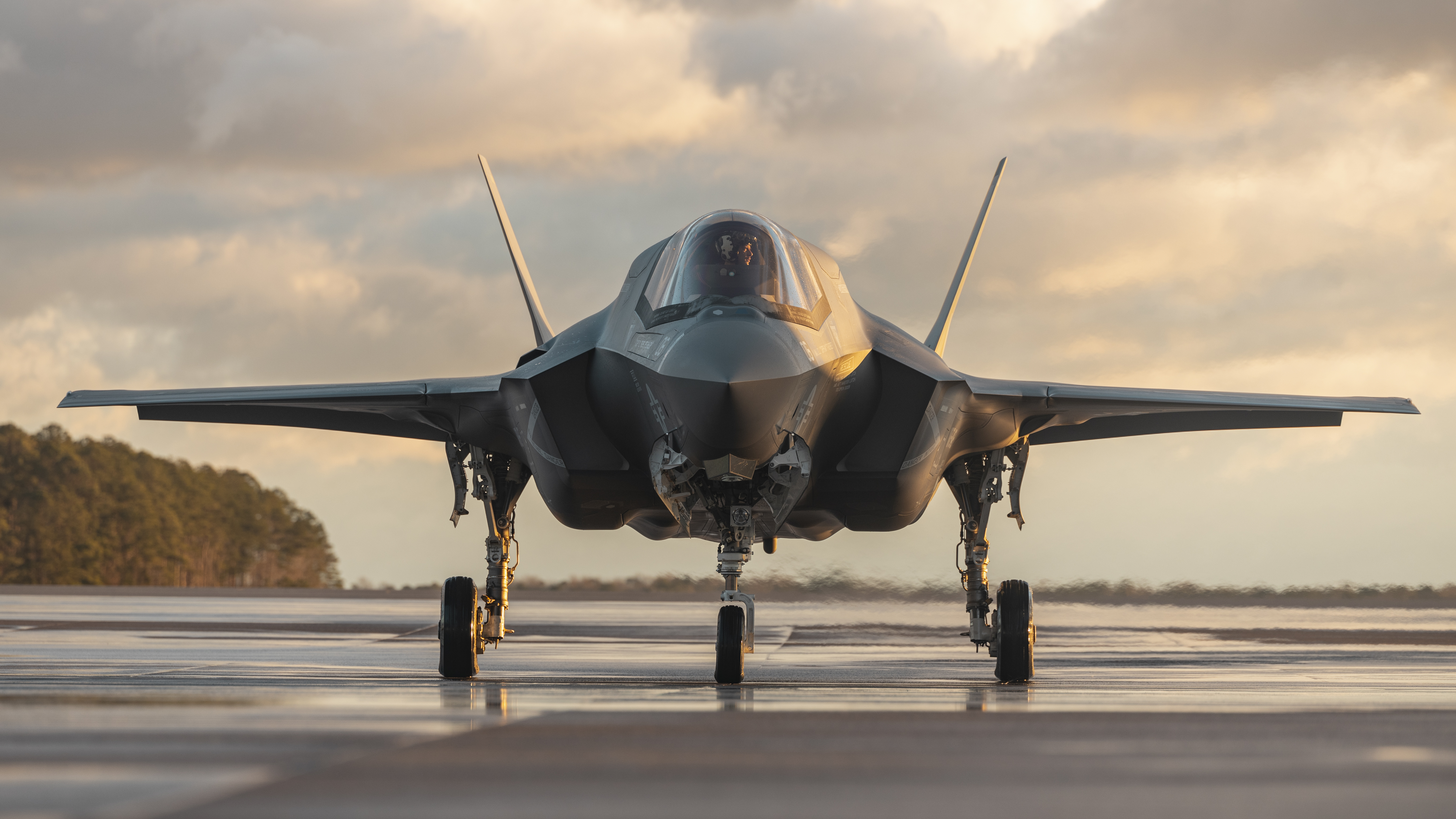 A U.S. Marine Corps F-35B Lightning II with Marine Fighter Attack Squadron (VMFA) 542, 2nd Marine Aircraft Wing, prepares to taxi at Marine Corps Air Station Cherry Point, North Carolina, Feb. 13, 2024. VMFA-542 is scheduled to deploy to Norway for Exercise Nordic Response 24. Exercise Nordic Response, formerly known as Cold Response, is a NATO training event conducted every two years to promote military competency in arctic environments and to foster interoperability between the U.S. Marine Corps and allied nations. (U.S. Marine Corps photo by Lance Cpl. Madison Blackstock)