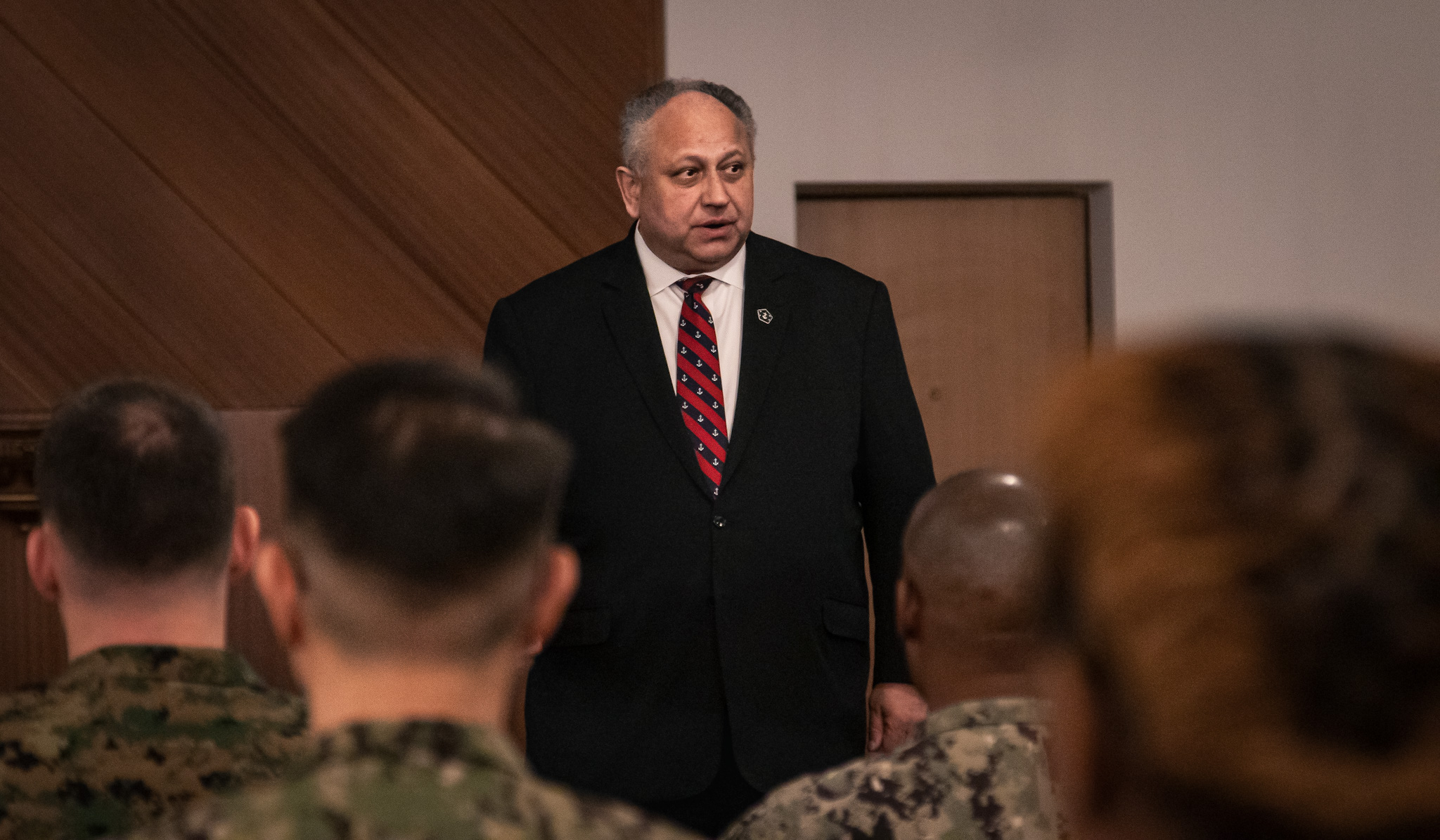 U.S. Secretary of the Navy Carlos Del Toro leads an all-hands event at Patch Barracks during a visit to the U.S. European Command headquarters in Stuttgart, Germany, on Jan. 22, 2024. In addition to meeting with U.S. Navy and personnel supporting USEUCOM, Del Toro met with U.S. European Command leadership to discuss support to NATO and strengthening security relationships in Europe.